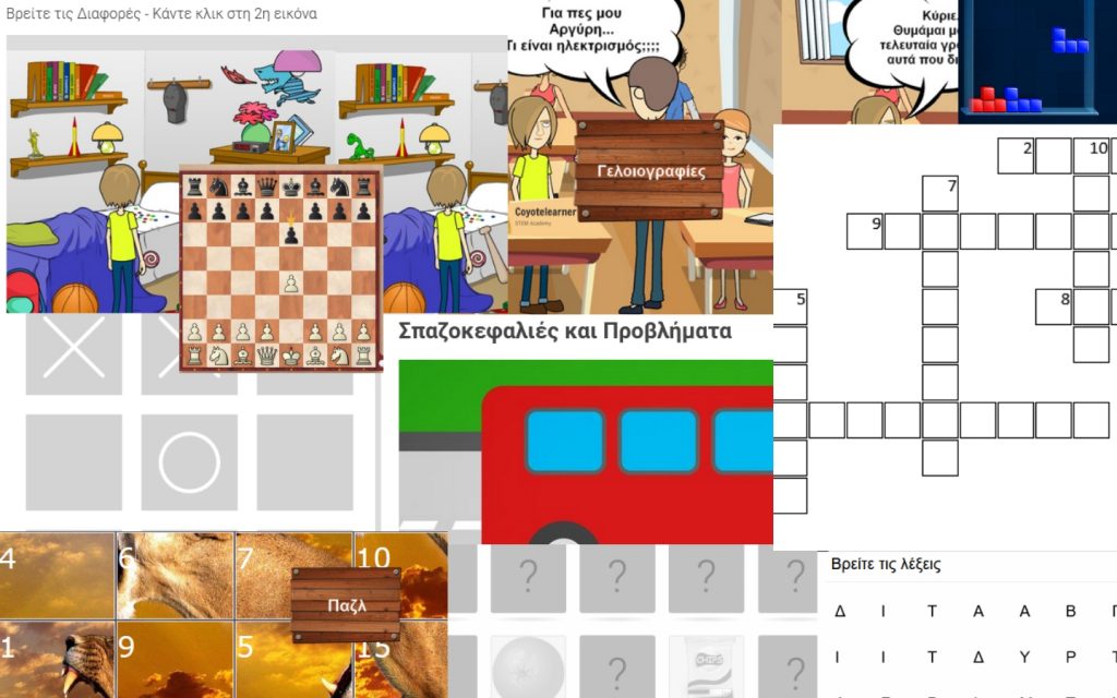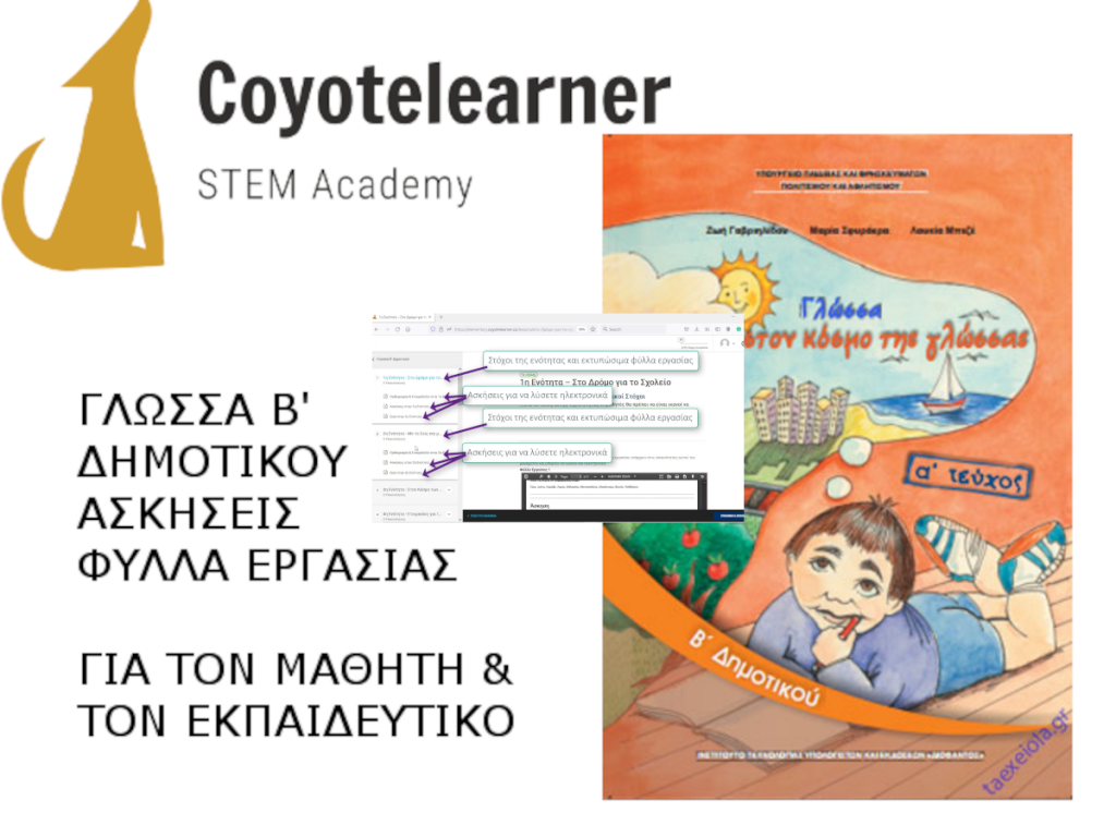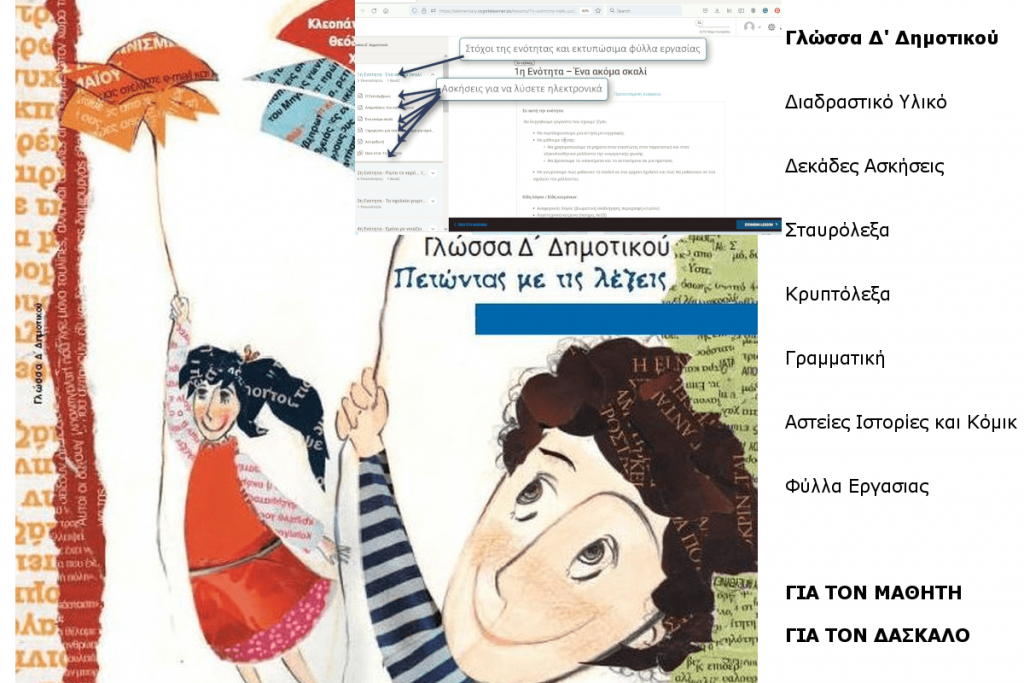Θα βρείτε: Ασκήσεις αντιστοίχισης. Ασκήσεις μεταφοράς – απόθεσης (drag and drop). Ασκήσεις συμπλήρωσης κενών. Αναπαραγωγή αρχείων ήχου για ορθογραφία. Quizzes. Ασκήσεις επιλογής σε εικόνες. Ασκήσεις επιλογής σε κείμενο. Γελοιογραφίες και κόμικ. Σταυρόλεξα. Κρυπτόλεξα. Εκτυπώσιμα Φύλλα Εργασίας. Και πολλά ακόμη.. Η Άννα και ο Αργύρης είναι δυο κινούμενα σχέδια που θα σας βοηθήσουν ιδιαίτερα να κατακτήσετε